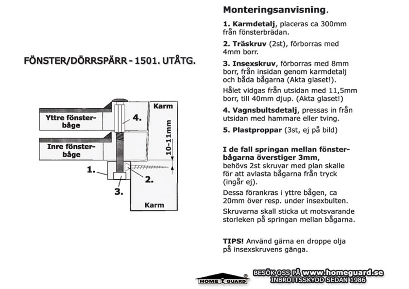 Inbrottsskydd till utåtgående fönster eller dörrar.