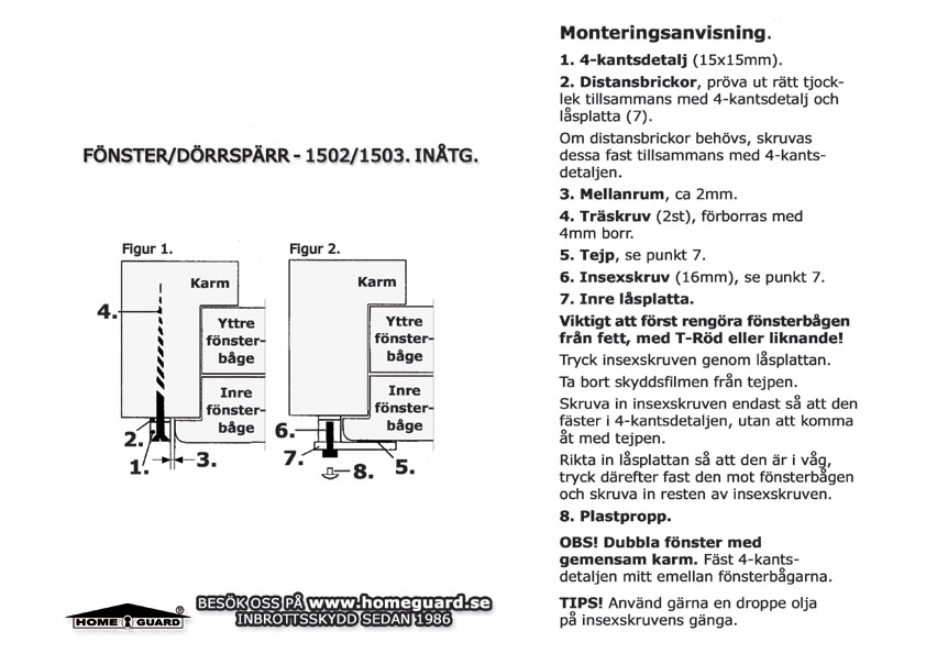 HG1502, Fönsterspärr, Inåtgående enkelfönster